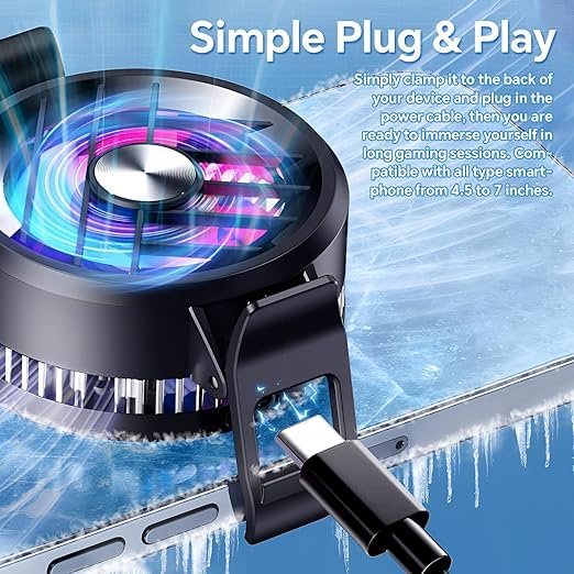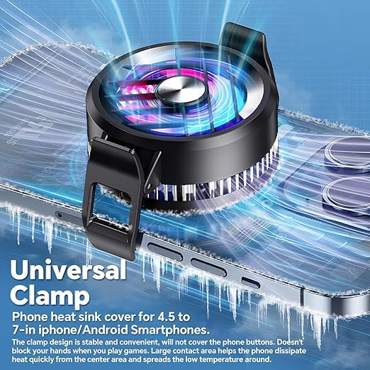 - [متوافق مع مختلف الهواتف] : يمكن استخدام المبرد مع معظم الهواتف الذكية بفضل تصميمه القابل للتعديل والمشبك المغناطيسي، دون الحاجة إلى أدوات إضافية أو إعدادات معقدة.