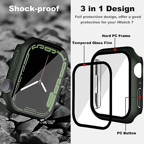 V Volt - جراب صلب من في فولت متوافق مع ساعة اي ووتش 44 ملم سلسلة 6-5-4 شاشة حماية الزجاج المقوى غطاء واقي متين ورفيع للغاية لساعة اخضر لايفون