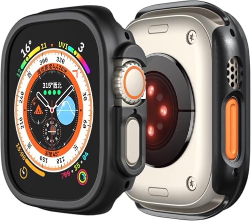 V Volt - جراب حماية صلب من V Volt متوافق مع اي ووتش الترا 49 ملم مقاوم للصدمات والصدمات من جميع الجوانب مصنوع من البولي كربونات الصلب ممتص للصدمات (اسود)