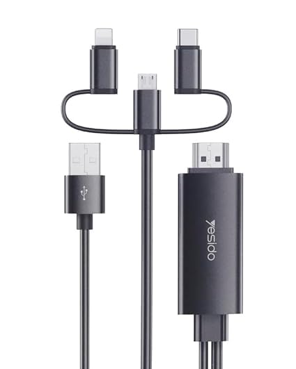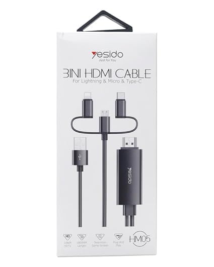 V Volt - كابل في فولت HM05: محول 3 في 1 بطول 1.8 متر - لايتنينج، مايكرو USB، نوع سي الى HDMI بدقة عالية، تصميم خالٍ من التشابك
