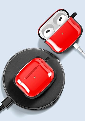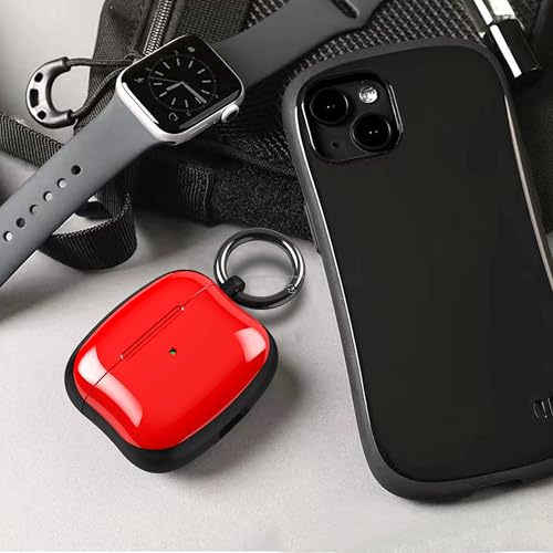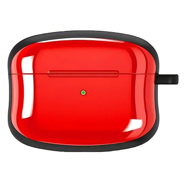 V Volt - جراب حماية هجين من V Volt لـ سماعات ايربودز الجيل التاني بلمسة نهائية لامعة وإطار متين وتصميم نحيف خفيف الوزن مع إضاءة ليد واضحة وحلقة تعليق معدنية. (احمر)