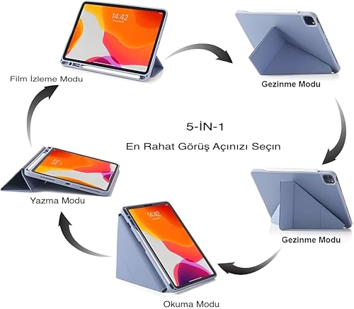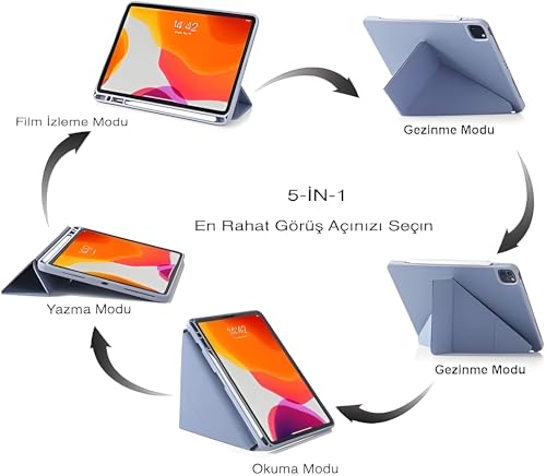 - [رؤية 15 درجة أو 65 درجة]: تصميم الغطاء الأمامي مصمم بمغناطيس ثلاثي الطيات قوي ومتين لأجهزة التابلت. نموذج لوحة مفاتيح 15 درجة مناسب للمحادثات اليومية والأعمال، نموذج مشاهدة الفيديو 65 درجة مناسب لمشاهدة الأفلام والقراءة. يمكنك من التحرك بحرية أو القيام بأنشطة ترفيهية أخرى.