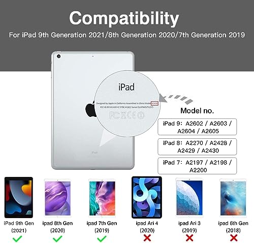 - متوافق مع اي باد ابل الجيل التاسع إصدار 2021 واي باد الجيل الثامن إصدار 2020 واي باد الجيل السابع إصدار 2019 [مقاس 10.2 بوصة، رقم الموديل: A2197/A2198/A2200/A2270/A2428/A2429/A2430) فقط. تحقق من رقم الموديل الخاص بك قبل تقديم طلب الشراء