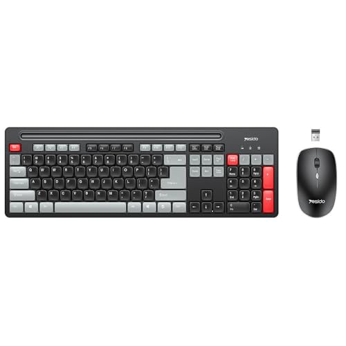 Generic - لوحة مفاتيح KB43 وماوس لاسلكي 2.4 G صامت للاستعمال المكتبي والتجاري من V VOLT مع تصميم مريح وموفر للطاقة متوافق مع الكمبيوتر المكتبي واللابتوب
