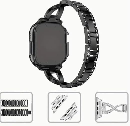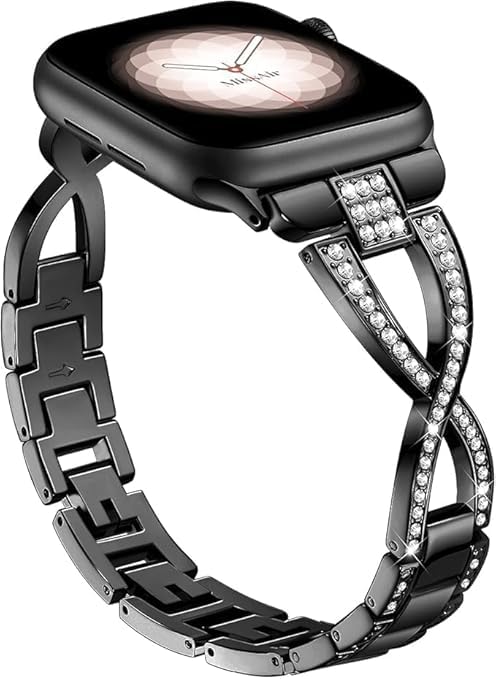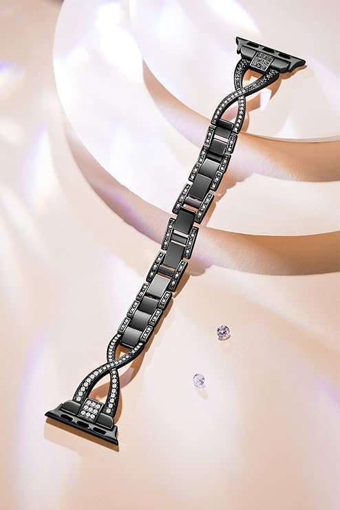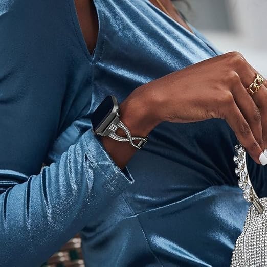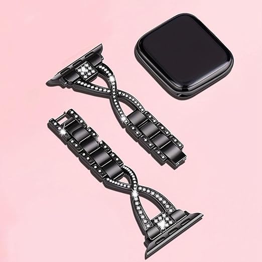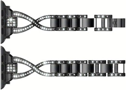 V Volt - سوار معدن فاخر للنساء من V Volt متوافق مع اي ووتش سيريس 1/2/3/4/5/6/7/8/9/10/الترا/الترا2 مقاس 42/44/45/46/49 ملم، حزام بديل أنيق من الستانلس ستيل مرصع بالكريستال اللامع، تصميم مجوهرات