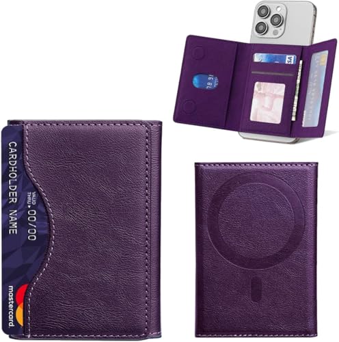 V Volt - محفظة جلدية مغناطيسية من V Volt أنيقة ثلاثية الطي متوافقة مع iPhone 11 12 13 14 15 16 ، تصميم فاخر، حافظة جلدية رفيعة وعصرية سهلة الحمل. (بنفسجي)