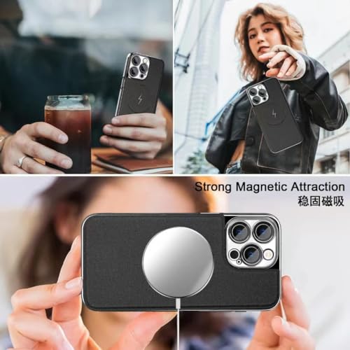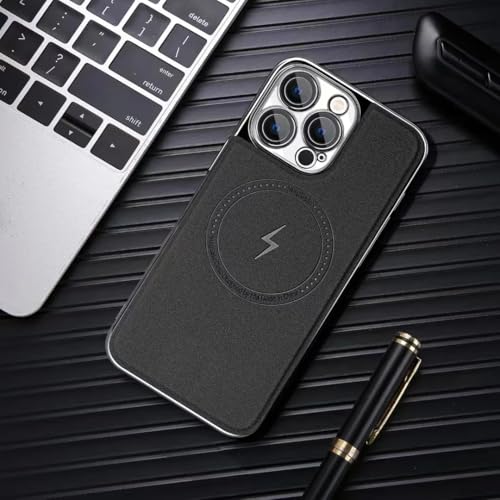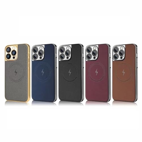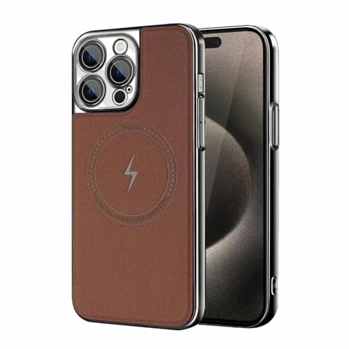 V Volt - جراب حماية خلفي من الجلد الصناعي بإطار رفيع مطلي بالكهرباء من البولي كربونات مضاد للصدمات من في فولت، يدعم الشحن اللاسلكي المغناطيسي، متوافق مع آيفون 15 برو ماكس (لون بني)
