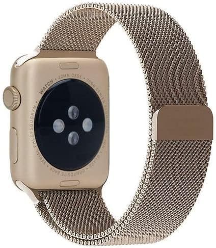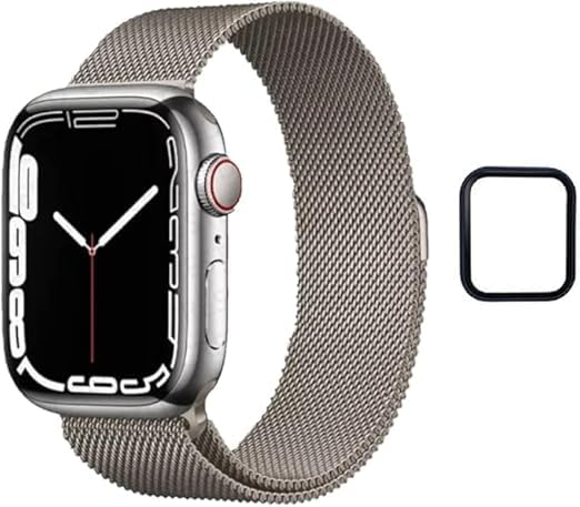 V Volt - سوار ساعة معدني من V Volt مع واقي شاشة اضافي متوافق مع اي ووتش سيريس 1/2/3 مقاس 42 ملم سوار شبكي من الستانلس ستيل - للرجال والنساء.