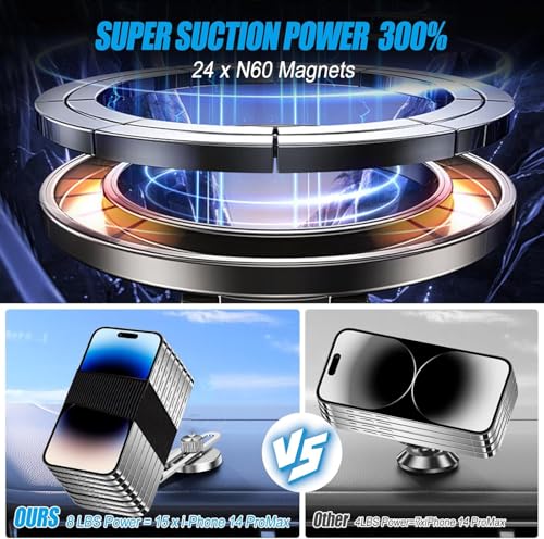- 【قوة تثبيت مغناطيسية هائلة】 تم تصميمه بمغناطيسات صناعية قوية من نوع N52 تخلق مجالاً مغناطيسياً مغلقاً. يضمن ذلك عدم وجود تداخل في الإشارة مع توفير قوة شفط كافية لحمل الهواتف الذكية الثقيلة بأمان، حتى أثناء الفرامل المفاجئة أو المطبات أو الطرق الوعرة.