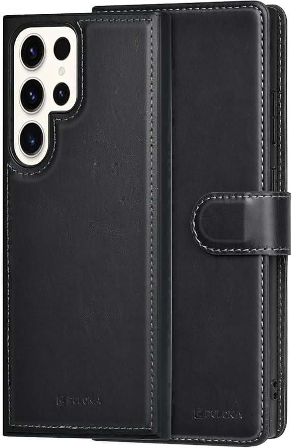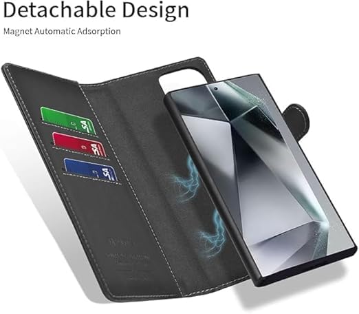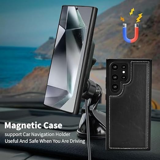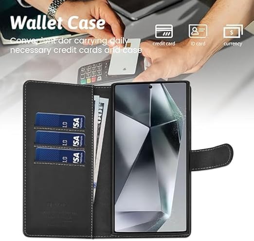 V Volt - حافظة حماية فاخرة من في فولت متوافقة مع سامسونج جالاكسي S25 الترا، جلد طبيعي، حامل بطاقات متعددة، حماية كاملة، اغلاق مغناطيسي، كلاسيكي، مضاد للصدمات، هدية مثالية (اسود)