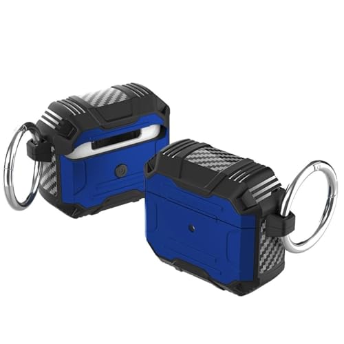 V Volt - حافظة حماية متينة متوافقة مع سماعات ايربودز برو مقاومة للصدمات بتصميم أنيق من ألياف الكربون مع مشبك حلقة تثبيت لحماية سماعاتك من الخدوش من في فولت (لون أزرق)