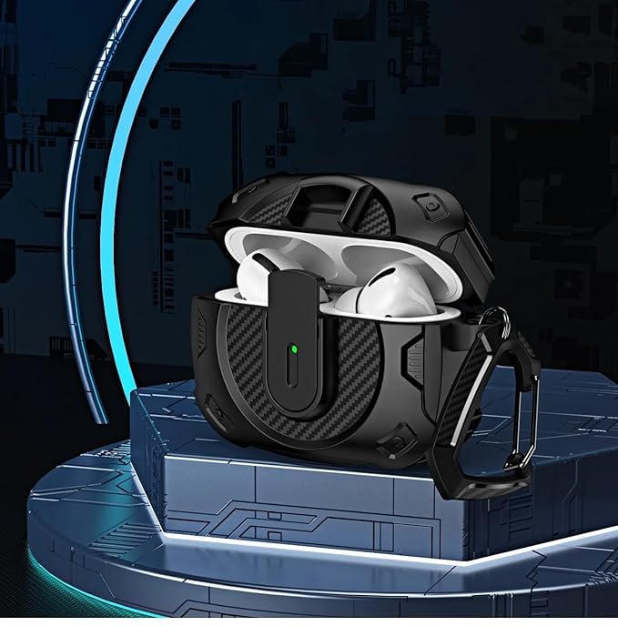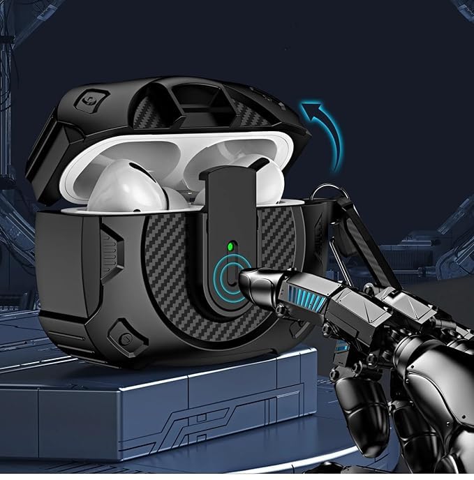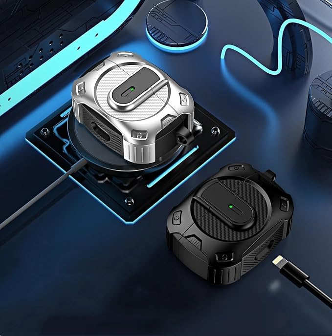 V Volt - حافظة حماية متينة من في فولت متوافقة مع سماعات ايربودز برو 2، حافظة واقية عسكرية مضادة للصدمات مع قفل وحلقة مفاتيح، هيكل صلب متوافق مع الشحن اللاسلكي (ابيض)