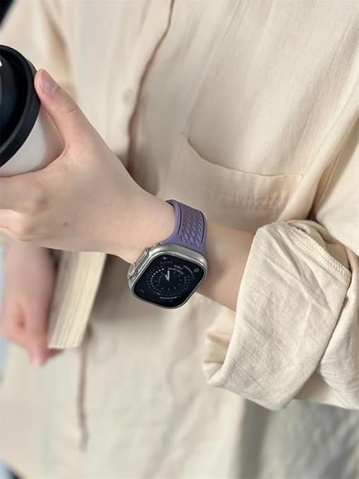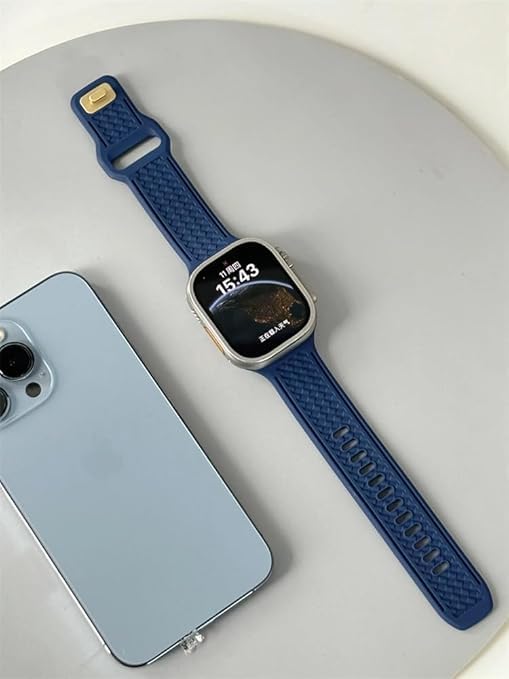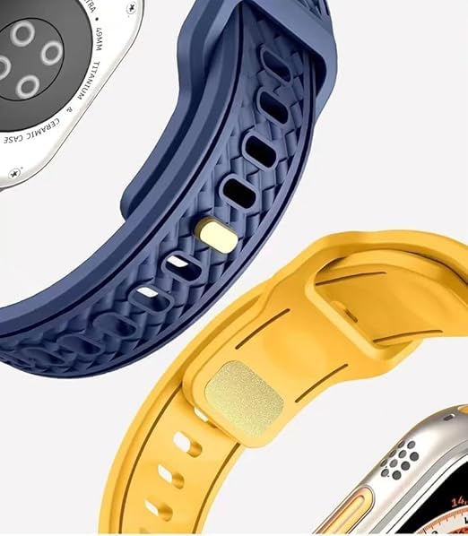 V Volt - سوار رياضي من السيليكون الناعم مع مشبك كلاسيكي من V Volt بتصميم رياضي سوار سيليكون ناعم مقاوم للماء متوافق مع اي واتش سيريس 1/2/3/4/5/6/7/8/9/الترا/الترا2/SEمقاس 42/44/45/49 ملم