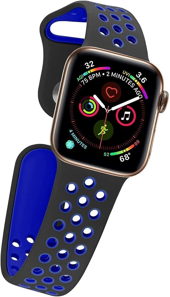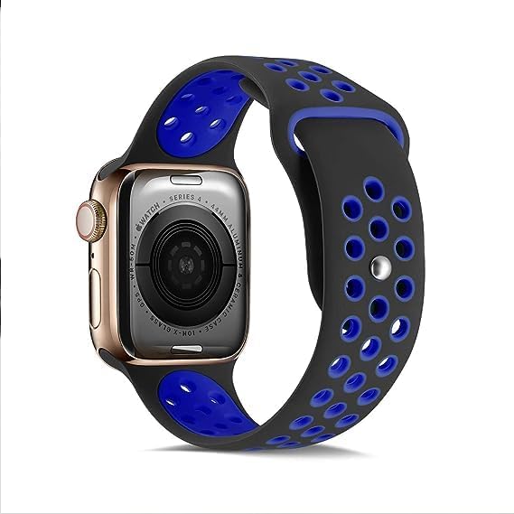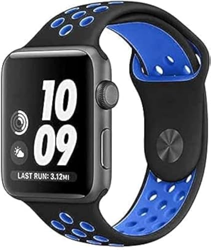 V Volt - سوار رياضي في فولت متوافق مع سوار ساعة آبل 42 ملم 44 ملم 45 ملم 49 ملم، سوار بديل من السيليكون الناعم مزود بمسامات للتهوية متوافق مع اي ووتش SE سلسلة 8 7 6 5 4 3 2 1 من في فولت (أسود وأزرق)