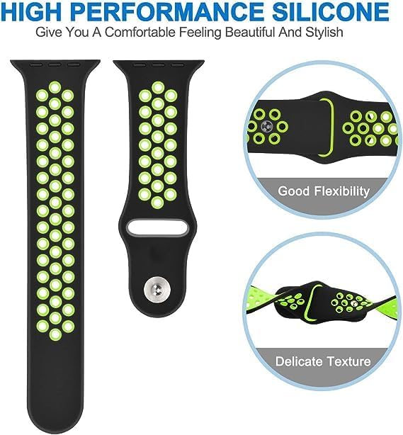 - 【مادة السيليكون الناعمة】 سوار ساعة ابل ووتش مصنوع من السيليكون عالي الجودة، وهو لطيف على البشرة وعديم الرائحة ومقاوم للماء، كما أنه خفيف ومرن للغاية، لا تقلق بشأن بهتان اللون، فهو يمنحك تجربة ارتداء مريحة.