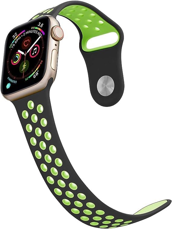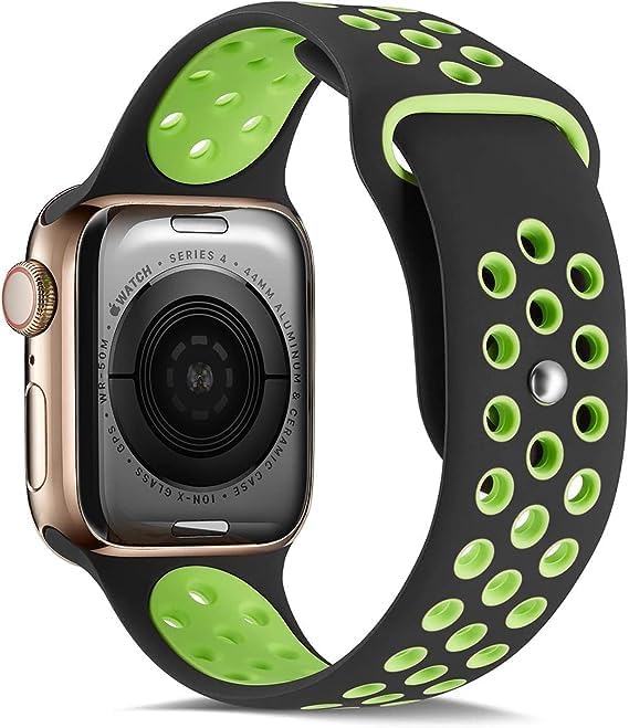 V Volt - سوار رياضي متوافق مع سوار ساعة آبل 42 ملم 44 ملم 45 ملم 49 ملم من في فولت، سوار بديل من السيليكون الناعم جيد التهوية متوافق مع اي ووتش اس اي سلسلة 8 7 6 5 4 3 2 1 (أسود وأخضر)