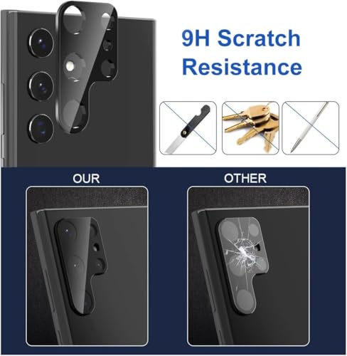 - [حماية فائقة للكاميرا]: يوفر الواقي الزجاجي المقوى درجة صلابة 9H، مما يجعله مقاومًا للخدوش الناتجة عن المفاتيح أو الأدوات الحادة، مما يحافظ على عدسات الكاميرا خالية من التلف اليومي.