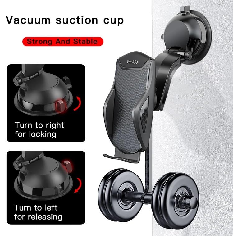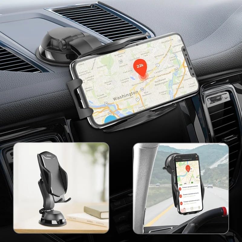 - [تثبيت قوي وموثوق:] : قاعدة شفط قوية تضمن تثبيت الحامل بإحكام على الزجاج الأمامي أو التابلوه، مما يمنع الاهتزاز أو الانزلاق حتى على الطرق الوعرة، لتوفير ثبات كامل للهاتف أثناء القيادة بأمان.