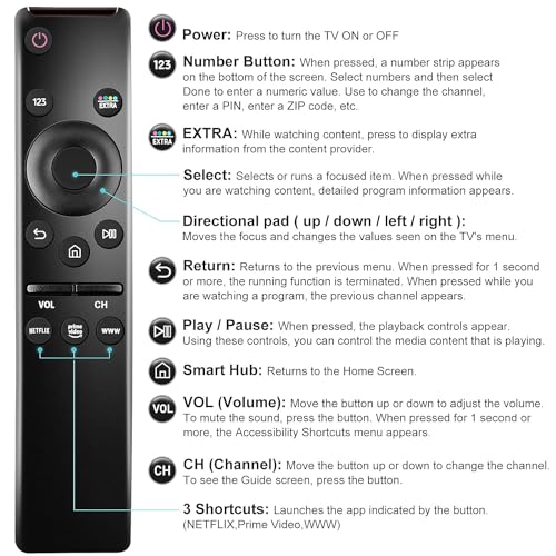 V4 Gadgets - جهاز تحكم عن بُعد يونيفرسال V4 متوافق مع جميع تلفزيونات سامسونج LED QLED UHD SUHD HDR LCD بإطار منحني، تلفزيونات 4K 8K 3D سمارت، مع أزرار لتطبيقات نيتفليكس، خدمة Prime Video، WWW، باللون الأسود