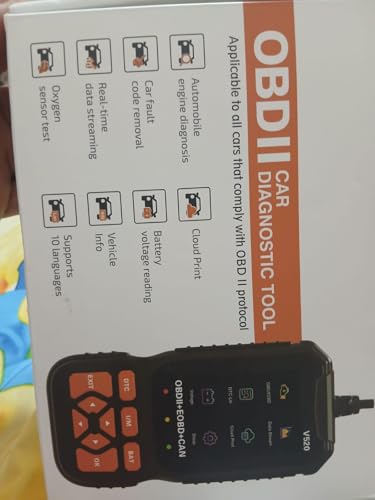 Generic - جهاز فحص أعطال السيارات V520، ماسح تشخيصي OBDII+EOBD+CAN، قارئ أكواد الأعطال مع طباعة سحابية، اختبار البطارية والجهد، دعم 10 لغات
