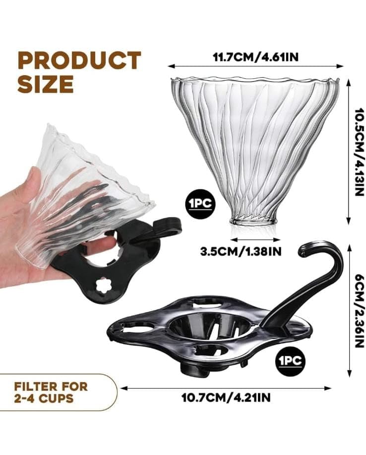 Generic - طقم قهوة V60 01 مع فلتر ومنقط مجموعة تقديم زجاجية شفافة