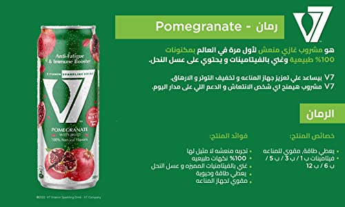 V7 - مشروب فيتامين فوار بنكهات طبيعية 100% - طعم الرمان من في7، 300 مل