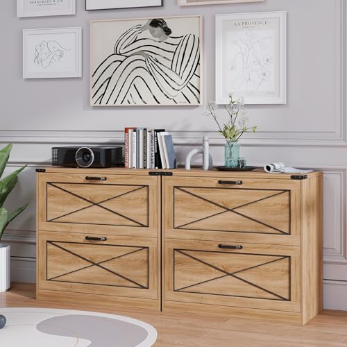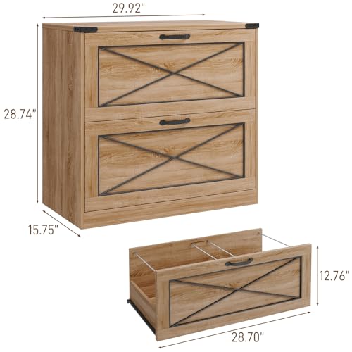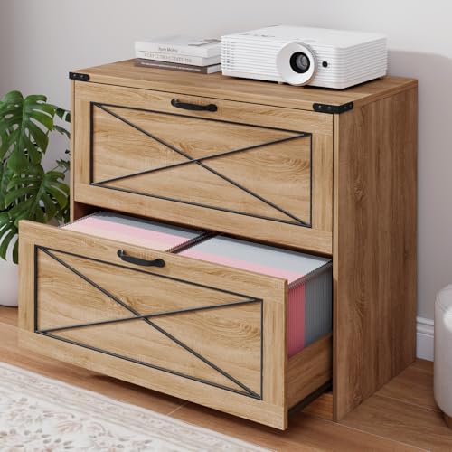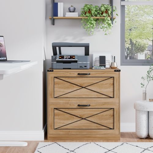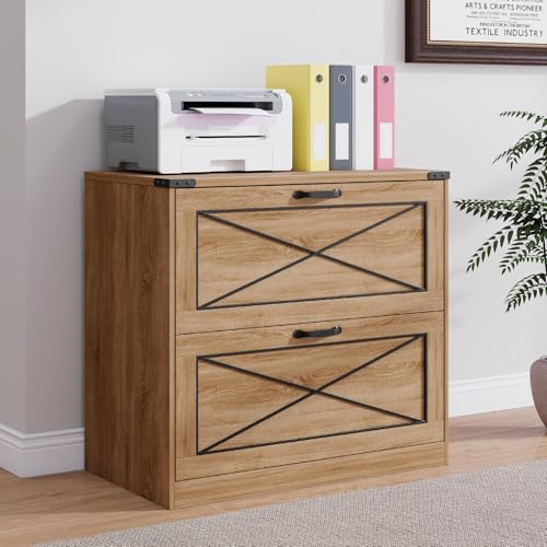 Vabches - خزانة ملفات جانبية بدرجين من فابشز، خزانة ملفات مكتب بنمط ريفي مع ادراج ملفات، خزانة تخزين خشبية ريفية لتنظيم الملفات للمكتب المنزلي وغرفة المعيشة، بني