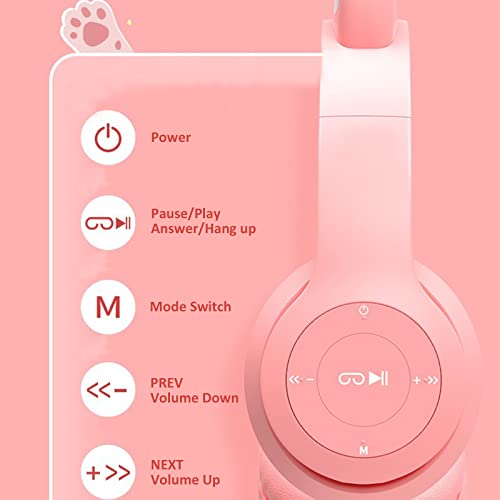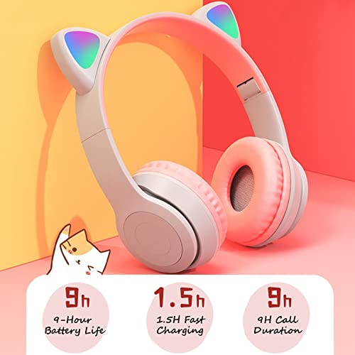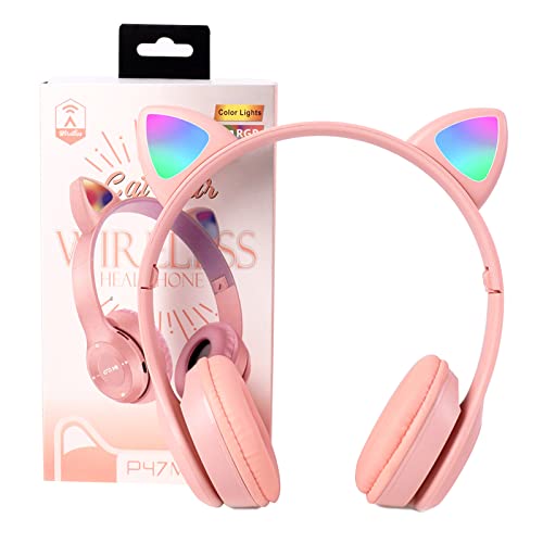 VACANON - سماعات رأس لاسلكية للأطفال بتصميم أذن قطة، مزودة بإضاءة LED قابلة للطي تعمل بالبلوتوث مع نظام هاي فاي للكمبيوتر والموبايل واللآيباد للدراسة والسفر من فاكانون (بينك)