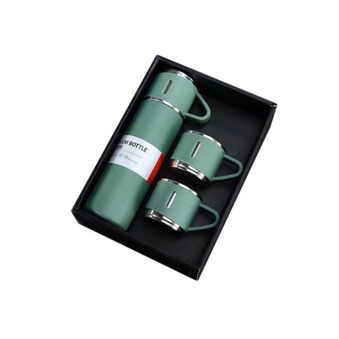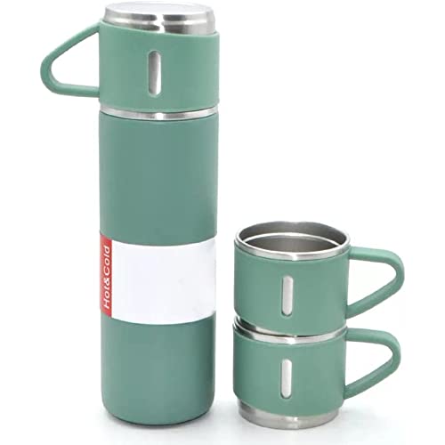 Spaceshoop - ترمس حراري معزول بالفراغ بطبقة مزدوجة من الستانلس ستيل مع 3 أغطية بتصميم كوب للمشروبات الساخنة والباردة والمياه والشاي والقهوة مناسب للسفر 500 مل لون أخضر