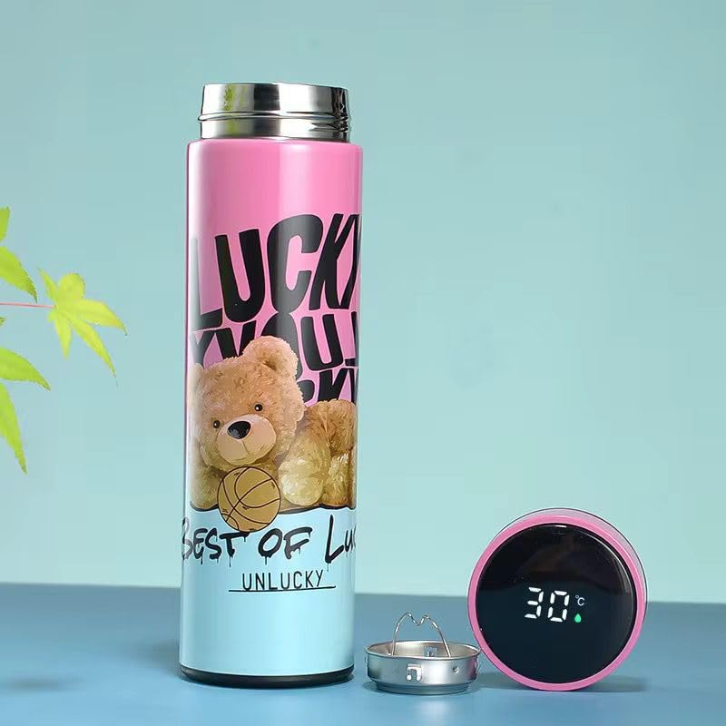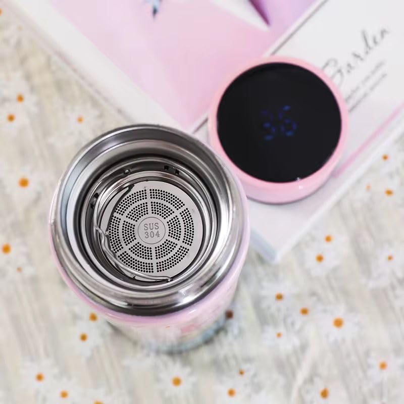 Qshop - زجاجة تفريغ بشاشة عرض ذكية من اندوير لدرجة الحرارة 17.6 أونصة، 500 مل، زجاجة ستانلس ستيل مفرغة ومانعة للتسرب مزودة بشاشة ال سي دي تعمل باللمس، فنجان قهوة وكوب للسفر (Grey)