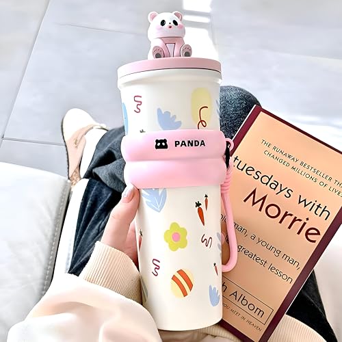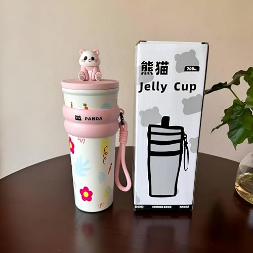 Generic - زجاجة مفرغة من الهواء - هيكل من الستانلس ستيل 304 مانع للتسرب، حجم 700 مل، تتميز بنمط زهور مبهج وغطاء باندا لطيف حصري لتجربة شرب فريدة (بينك)