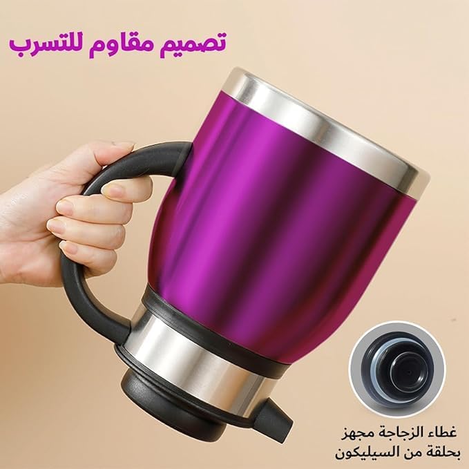 - متانة فائقة بفضل الجدار المزدوج: تساعد الجدران المصنوعة من الفولاذ المقاوم للصدأ على تقليل الرطوبة والحفاظ على الحرارة، مع غطاء مقاوم للتسرب يغلق بإحكام أثناء التنقل.