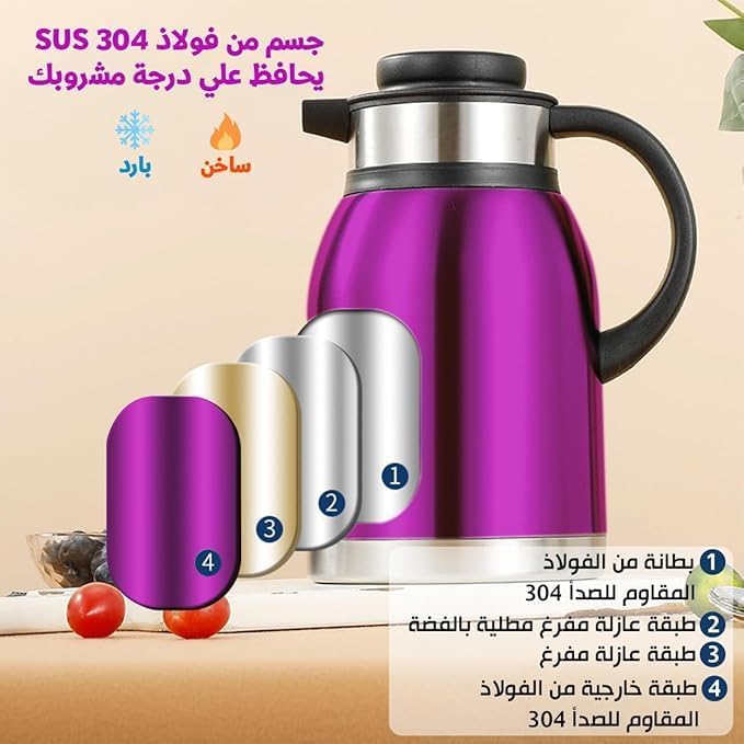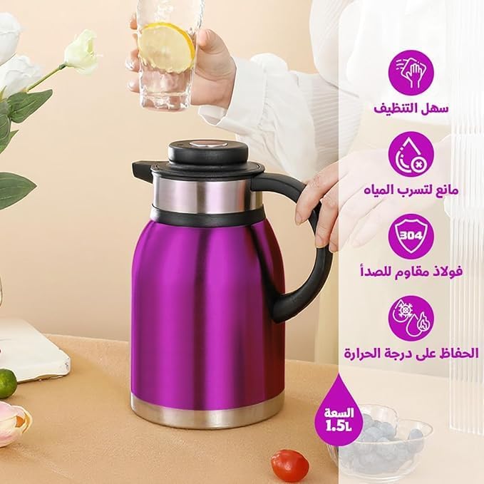 - احتفظ بالمشروبات ساخنة أو باردة في أي مكان: يحافظ الترمس الحراري المعزول والمصنوع من الفولاذ المقاوم للصدأ على المشروبات لذيذة أثناء التنقل والمحاضرات والرحلات البرية، ويأتي بسعة 1.5 لتر. ودّع الانسكاب والرشفات الفاترة.