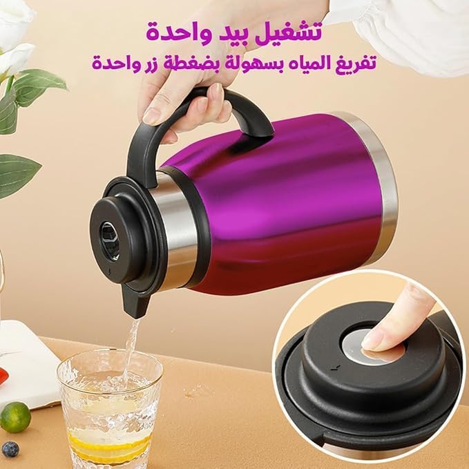 - سعة 1.5 لتر كبيرة مع تصميم صغير: استمتع بتحضير الشاي للتجمعات العائلية أو الماء للذهاب إلى الجيم. يمكن وضعه بسهولة في معظم الشنط وسلال النزهات بفضل تصميمه النحيف.