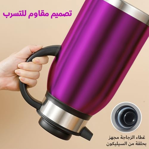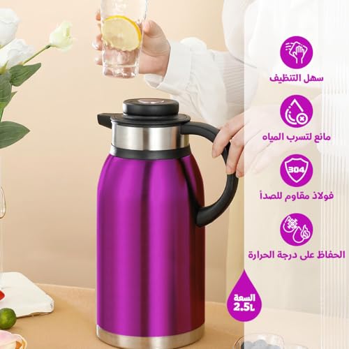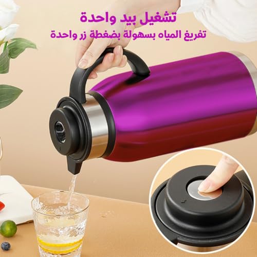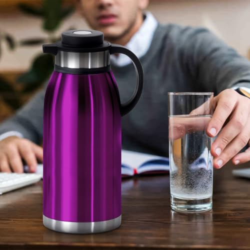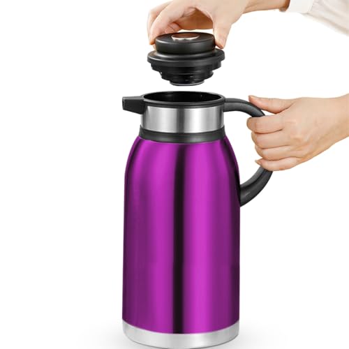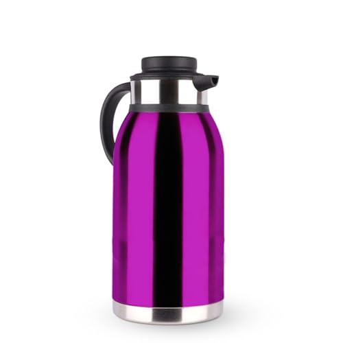 Generic - ترمس حراري مفرغ من الهواء من الفولاذ المقاوم للصدأ للمشروبات الساخنة والباردة مع مقبض مانع للتسرب، إبريق معزول للقهوة والشاي والماء للمنزل والمكتب والسفر، لون أرجواني، سعة 2 لتر