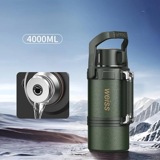 - زجاجة واحدة تدوم طوال اليوم - تتميز زجاجة المياه هذه بسعة كبيرة 4 لتر، مما يجعلها مثالية لأيام العمل الطويلة أو الاستخدام العائلي أو الرحلات الخارجية دون الحاجة إلى إعادة تعبئة مستمرة.