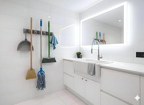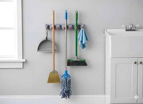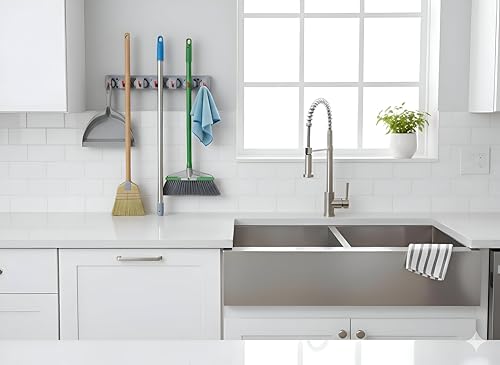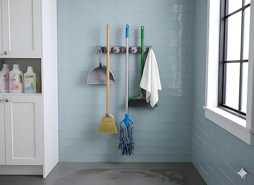 - قل وداعًا للفوضى مع هذا الحامل الذكي المثبت على الحائط المصمم لتنظيم جميع أدوات التنظيف الخاصة بك بأناقة في حل واحد أنيق وموفر للمساحة للمطبخ أو الحمام.