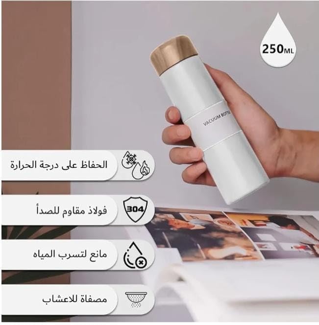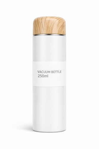 Generic - زجاجة مياه بعزل حراري للسوائل من الفولاذ المقاوم للصدأ مع غطاء محكم الإغلاق، عزل مزدوج للمشروبات الساخنة والباردة بتصميم مدمج مثالي للسفر، لون أبيض - سعة 250 مل