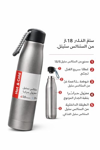 - عزل حراري متقدم: تصميم مزدوج الجدار بتقنية العزل الفراغي يحافظ على المشروبات الباردة لمدة تصل إلى 30 ساعة والساخنة لمدة تصل إلى 10 ساعات
