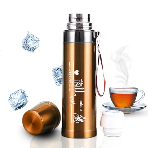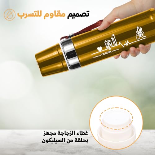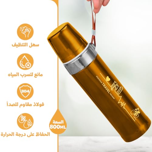 Generic - ترمس حراري من الفولاذ المقاوم للصدأ معزول بتفريغ الهواء مانع للتسرب خالي من مادة بيسفينول أ، زجاجة مياه رياضية للقهوة والشاي للسفر للحفاظ على المشروبات ساخنة أو باردة، ترمس حراري سعة 800 مل، لون ذهبي