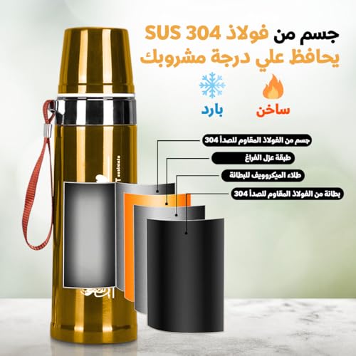 - ترمس حراري متعدد الاستخدامات: مثالي للاستخدام الداخلي والخارجي، مما يحافظ على مشروباتك في درجة حرارة مثالية أينما ذهبت.