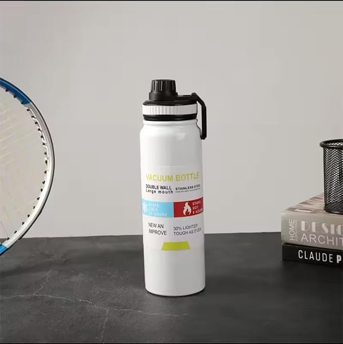 Generic - زجاجة مياه معزولة بتفريغ الهواء من الستانلس ستيل بجدار مزدوج، فوهة كبيرة، مانعة للتسرب، قابلة لاعادة الاستخدام، للرياضة وصالة الالعاب الرياضية والسفر والاماكن الخارجية - ساخنة 12 ساعة باردة 24 ساعة