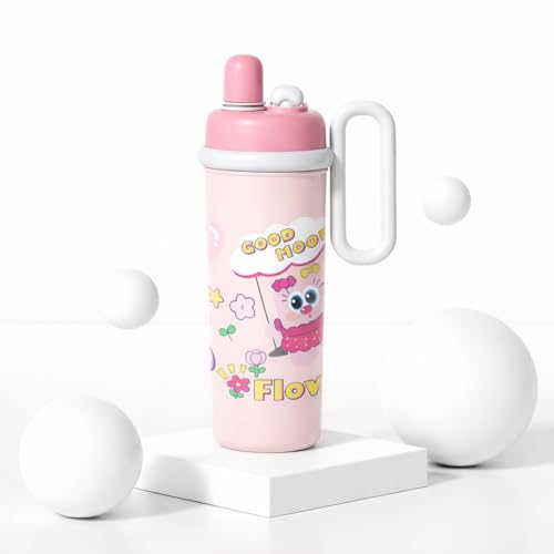 Generic - كوب سفر معزول بتفريغ الهواء 700 مل مع مقبض وقشة، كوب من الستانلس ستيل مع غطاء ثنائي الاتجاه، مقاوم للتسرب للمشروبات الساخنة والباردة والمكتب وصالة الالعاب الرياضية F-1533 (بينك)