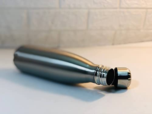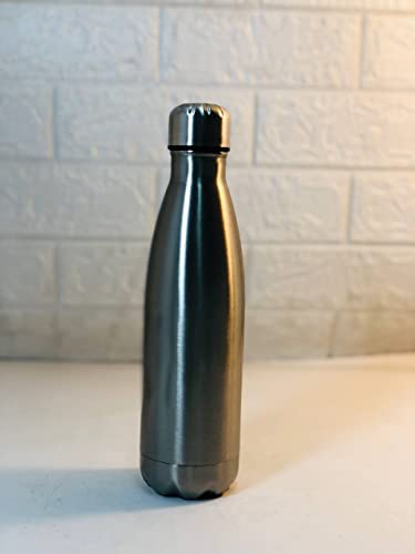 Spaceshoop - زجاجة مياه معزولة بتفريغ الهواء بجدار مزدوج بتصميم زجاجة كولا، قابلة لإعادة الاستخدام ومانعة للتسرب وتحفظ البرودة لمدة 24 ساعة والسخونة لمدة 12 ساعة، فضي (500 ملليلتر)