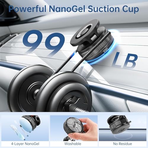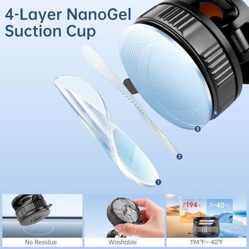 - كوب شفط قوي: مزود بتقنية نانو جل المكونة من 4 طبقات، يتناسب حامل الهاتف المغناطيسي هذا بإحكام على الأسطح المزخرفة لإغلاق سلس. يوفر نظام القفل بتفريغ الهواء شفطًا قويًا بمجرد لف بسيط، مثالي للوحة عدادات السيارة والأسطح الخشبية والزجاج الأمامي والزجاج والمرآة. مع قوة تثبيت تبلغ 15000 غرام لكل ثانية، يحافظ حامل الهاتف هذا على هاتفك آمنًا على الطرق الوعرة والسرعات العالية. لا يترك أي بقايا عند إزالته، وهو قابل للغسل وإعادة الاستخدام للاستخدام طويل الأمد. نصيحة: للحصول على أفضل التصاق على الأسطح المنسوجة، اتركه لمدة 12-24 ساعة