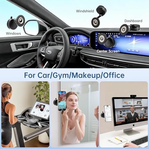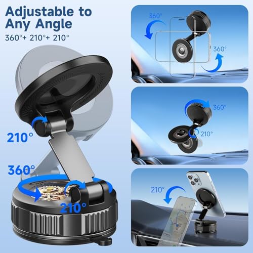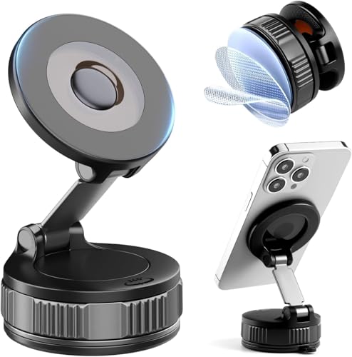 Generic - حامل جوال مغناطيسي بتفريغ الهواء، قاعدة تثبيت بالشفط قابلة للتعديل 360 درجة للسيارة/صالة الالعاب الرياضية/الاستحمام/المكتب، حامل جوال للسيارة للوحة العدادات والزجاج الامامي متوافق مع ايفون 17 16 15 14