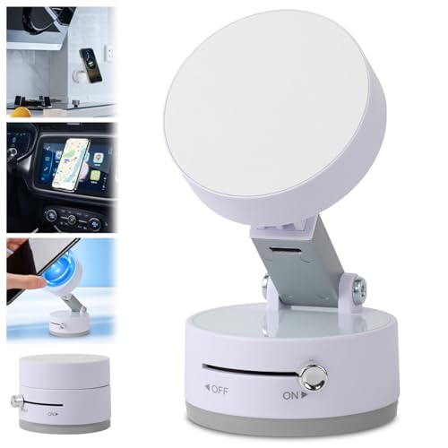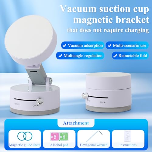deterlect - Vacuum Magnetic Suction Phone Holder, 2025 New Magnetic Suction Phone Mount, Magnetic Car Suction Cup Holder, Foldable and Retractable Double-Sided Magnetic Phone Holder for All Phones (White)