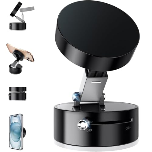 Belcompany - حامل جوال مغناطيسي بتفريغ الهواء، حامل جوال للسيارة بقاعدة شفط قابلة للتعديل 2025، حامل موبايل قابل للطي والسحب للسيارة/صالة الالعاب الرياضية/المرآة/سطح املس لايفون 16/15/14/13/12
