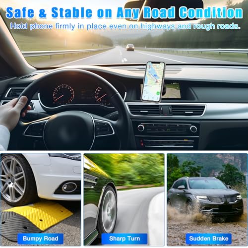 - حامل هاتف مغناطيسي قوي - يتميز حامل الهاتف المغناطيسي القابل للطي والقابل للتعديل للسيارة بتقنية استشعار الفراغ الذكية المقترنة بمغناطيس N52 الدائم القوي الذي يمكن أن يخلق جاذبية قوية ويدعم هاتفك بقوة حتى أثناء الفرامل المفاجئة والمطبات السريعة وظروف الطريق المتنوعة.