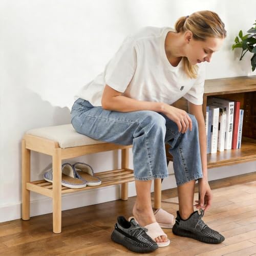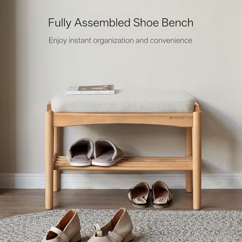 Vadisun - مقعد تخزين أحذية من فاديسون من الخشب الطبيعي الصلب، يأتي مركبًا بالكامل، مزود بمسند مبطن للمداخل، غرف المعيشة، غرف النوم، والممرات، 30 × 60 × 42 سم، طبيعي